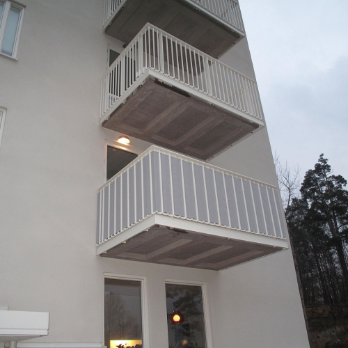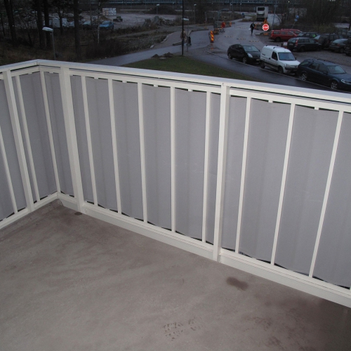 Balkongskydd är en snygg, enkel och bra lösning för att minimera insyn och blåst på din balkong. Ett snyggt och personligt balkongskydd ger balkongen den där ombonade och somriga känslan under hela sommarhalvåret. Balkongskydden måttbeställs och skräddarsys för att passa just din balkong och kan tillverkas i valfri markisväv. Du har över 100 olika kulörer att välja mellan. Prisexempel: Maila in mått på den aktuella balkongen (höjd, bredd och längd) eller ring oss för offert.