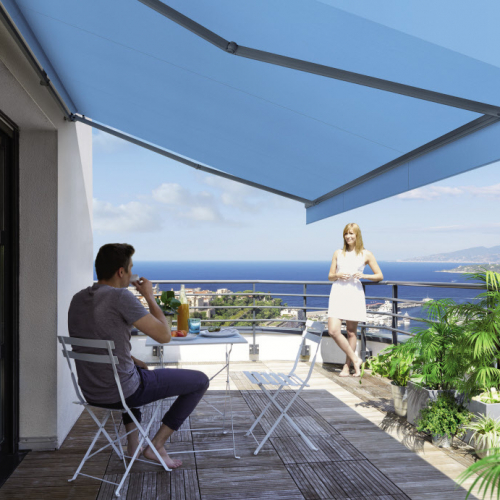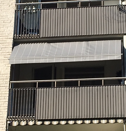Detta är en markiskonstruktion utvecklad enbart för montage i balkongalkov. Inga ingrepp i vare sig tak eller golv erfordras och markisen kan därför lätt flyttas. Markisen är enbart avsedd för balkonger.